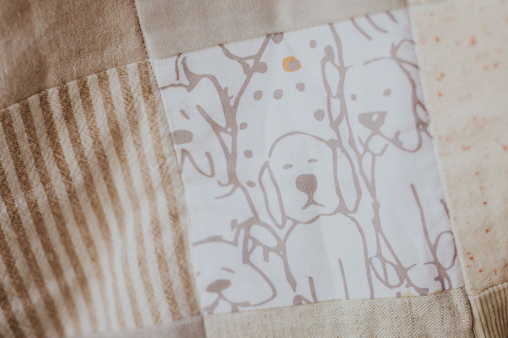 Stay cozy and stylish this fall with our handmade quilt. Featuring neutral shades and fun puppy patterns, it's the perfect addition to your autumn decor. Made to last and meant to be utilized for everyday use, or cherished as an heirloom.