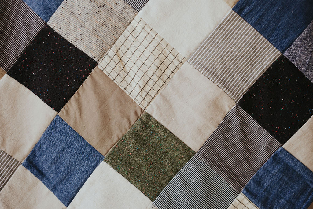Stay cozy and stylish this fall with our handmade quilt. Featuring neutral shades and denim patches, it's the perfect addition to your autumn decor. Made to last and meant to be utilized for everyday use, or cherished as an heirloom.